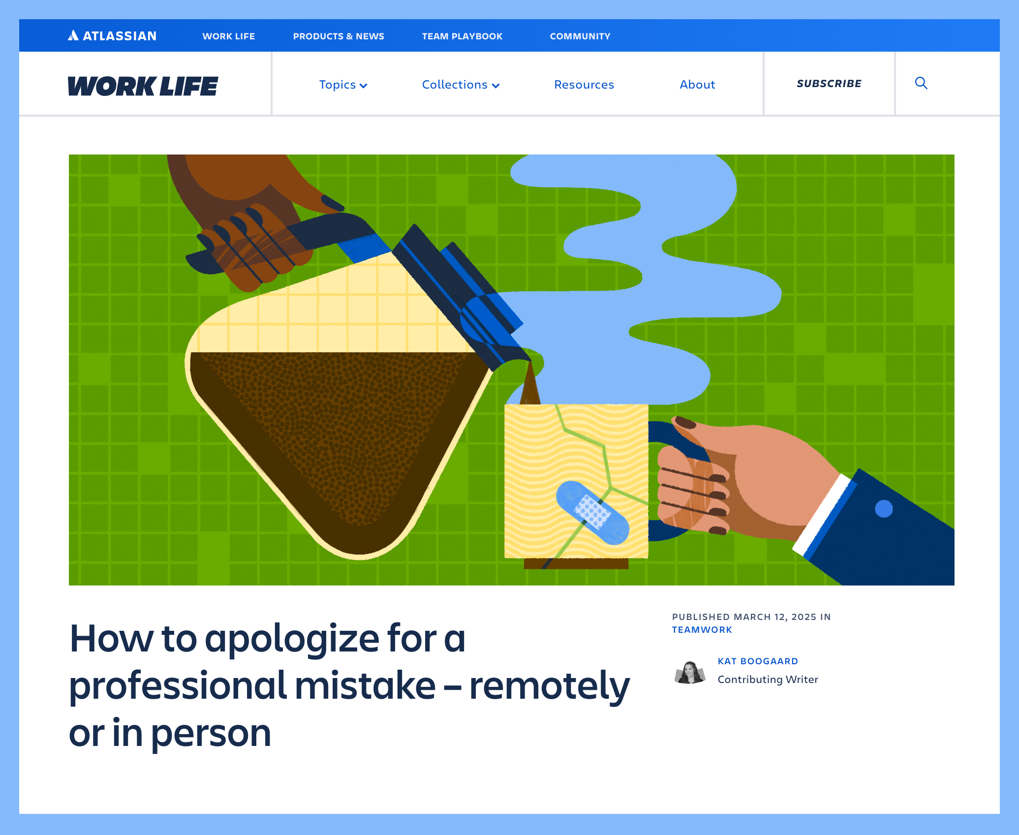 Illustration commissioned by Atlassian for their digital publication Work Life, supporting an article on how to apologise in the workplace