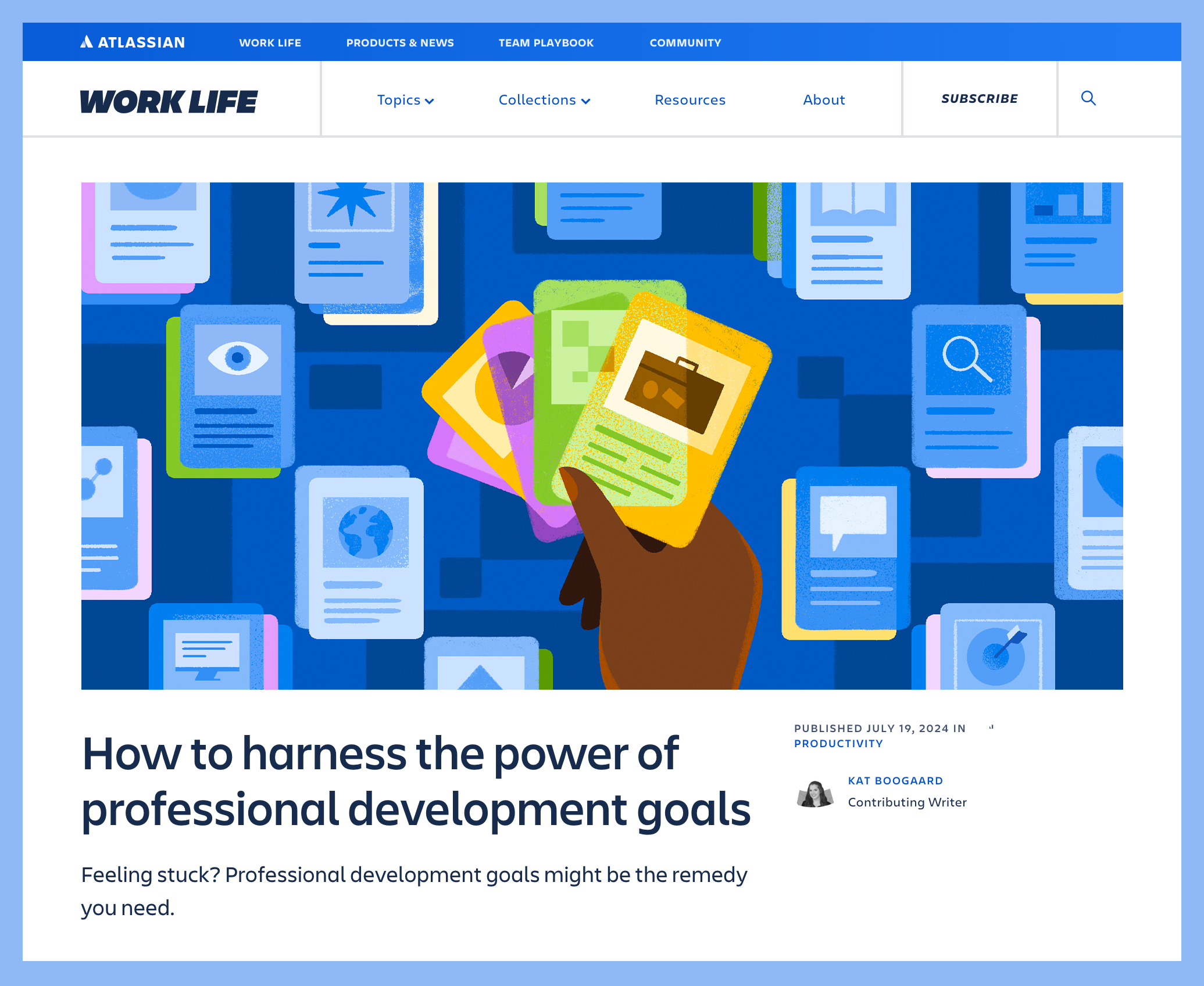 Illustration commissioned by Atlassian for their digital publication Work Life, supporting an article about setting professional development goals in the workplace