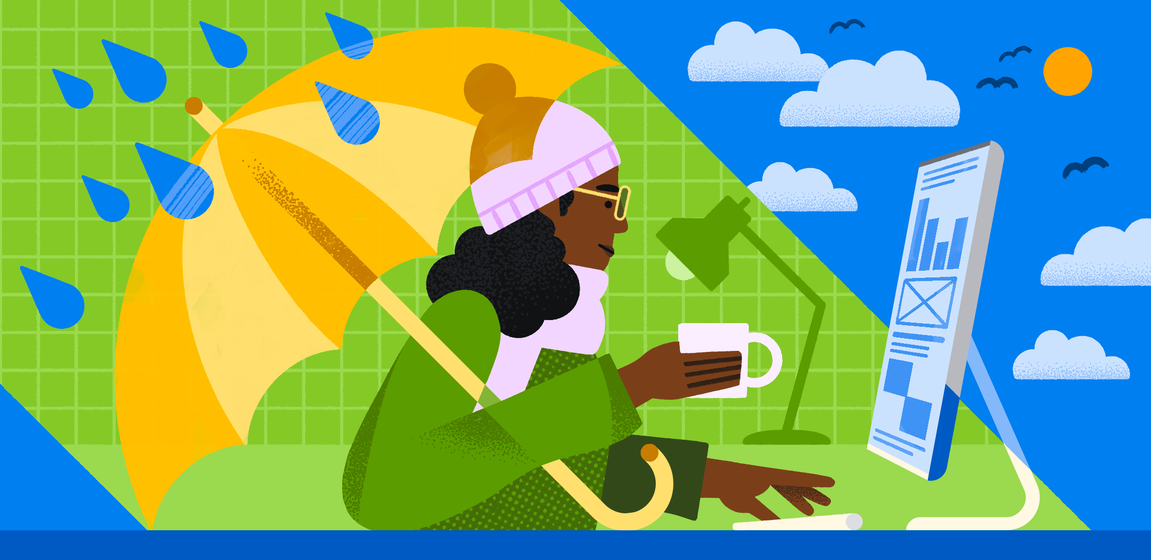 Illustration commissioned by Atlassian for their digital publication Work Life, supporting an article about how the seasons affect our productivity